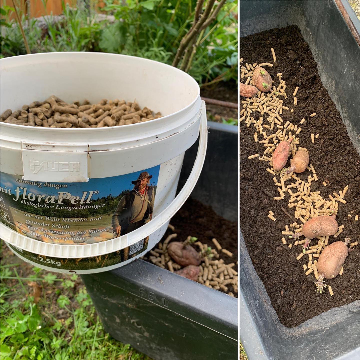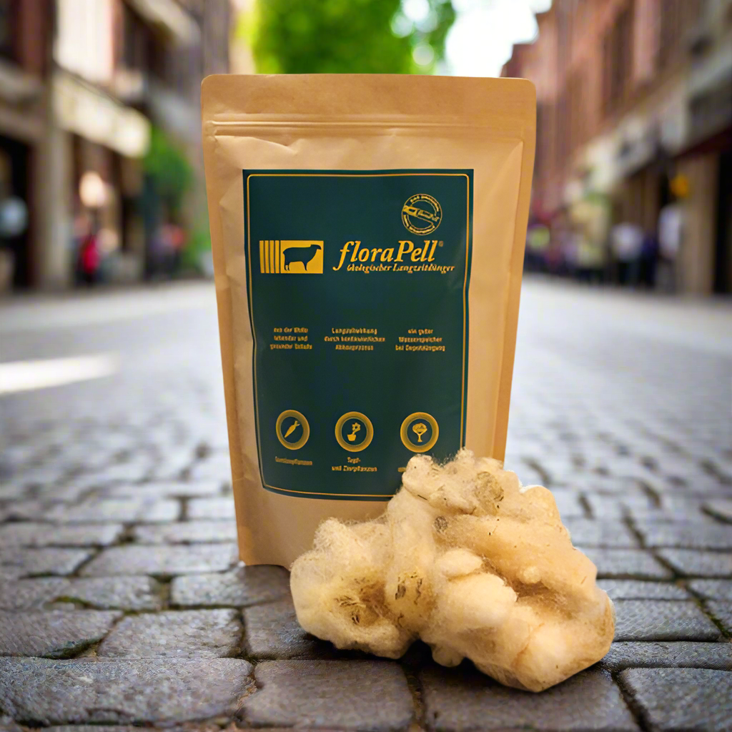Die Düngepellets sind aus Schafwolle, welche Schäfer direkt über den Wollankauf von ihren Schafen verkaufen. Also wirklich nur gepresste Schafwolle.