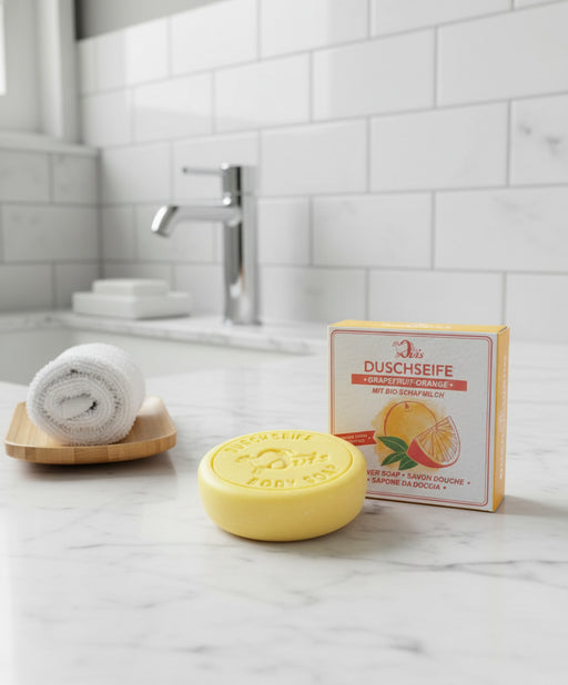 Eigenschaften Grapefruit–Orange Duschseife mit Bio-Schafmilch 🍊🐑✨ Fruchtig-frisch, cremig und extra pflegend – für ein Duscherlebnis, das bege...